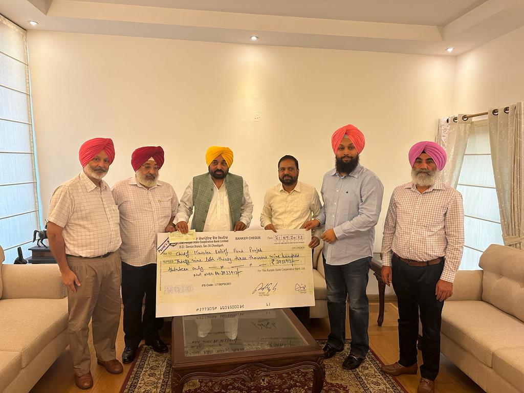 ਸਹਿਕਾਰੀ ਬੈਂਕ ਮੁਲਾਜ਼ਮਾਂ ਵੱਲੋਂ ਮੁੱਖ ਮੰਤਰੀ ਰਾਹਤ ਫੰਡ ਵਿੱਚ 39.33 ਲੱਖ ਰੁਪਏ ਦਾ ਯੋਗਦਾਨ